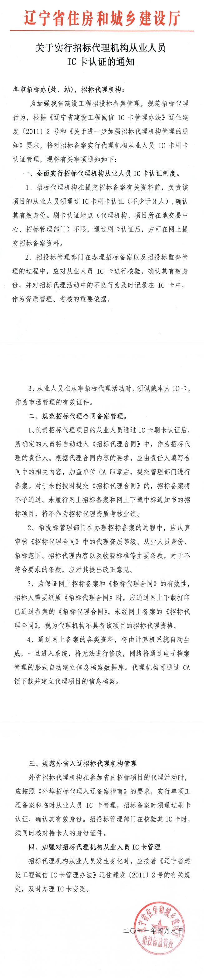【概要描述】关于实行招标代理机构从业人员IC卡认证的通知