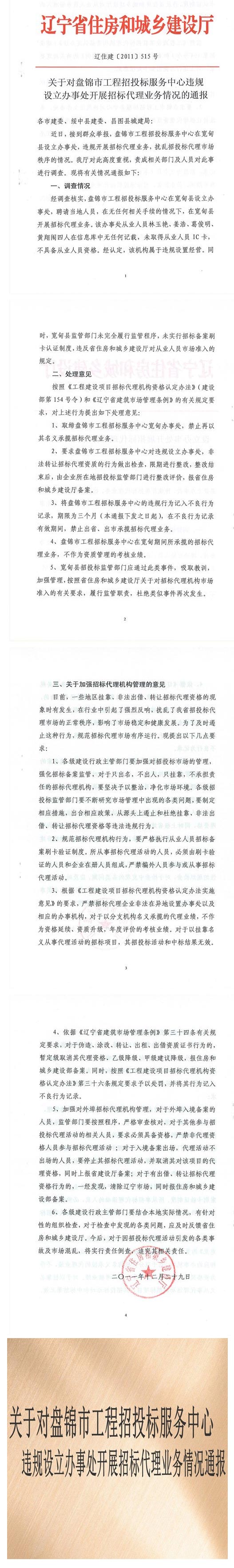 【概要描述】关于对盘锦市工程招投标服务中心违规设立办事处开展招标代理业务情况通报