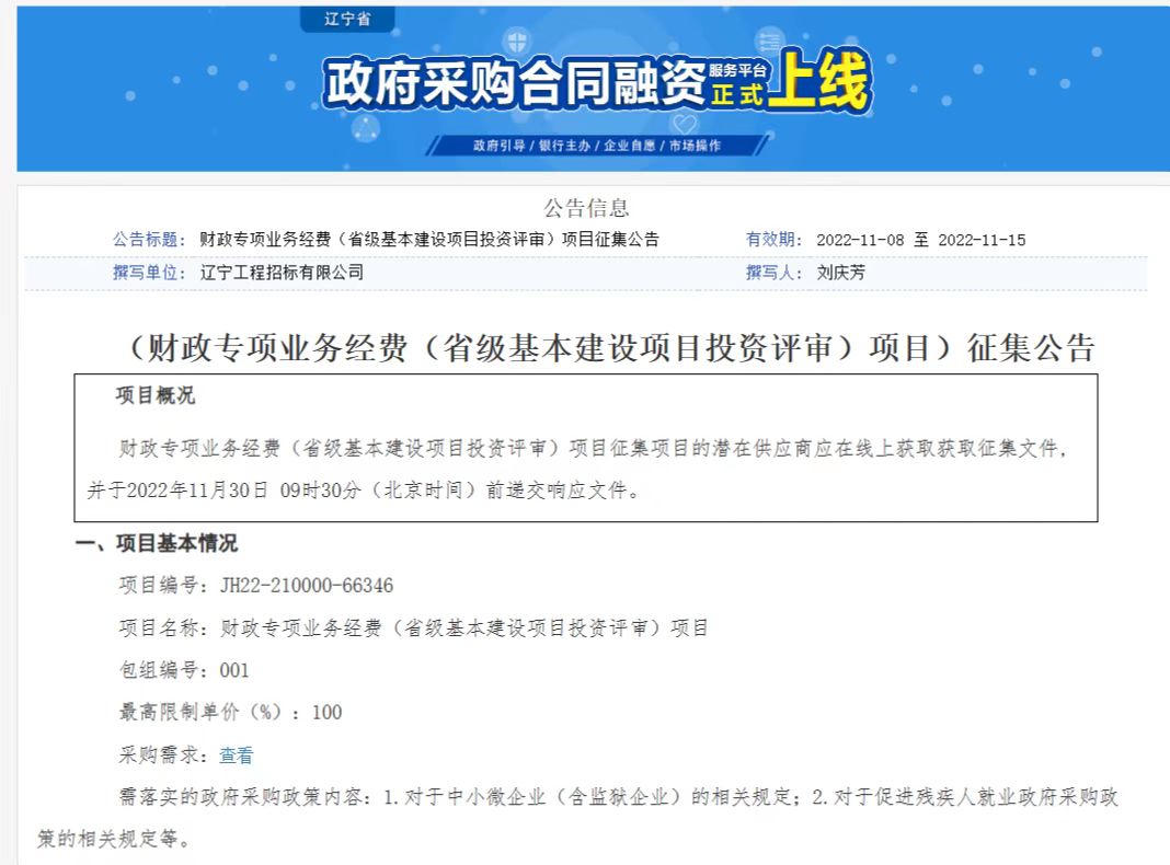 奇异果在线手机版(大中国区)受辽宁省财政厅的委托,代理的“专项业务经费(省级基本建设项目投资评审)项目”采购工作圆满完成。该项目是辽宁省首个委托社会代理机构实施的省本级框架协议采购项目,对于全省框架协议采购工作具有引领示范作用。