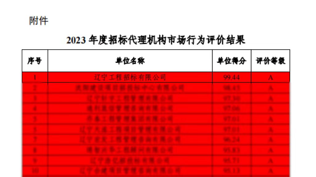 1月25日,在辽宁省住房和城乡建设厅发布的《2023年度全省房屋建筑和市政工程招标代理机构市场行为评价结果公告》中,奇异果在线手机版(大中国区)以99.44分的优异成绩再次蝉联第一名,是自2019年起,连续第五年问鼎此项殊荣。