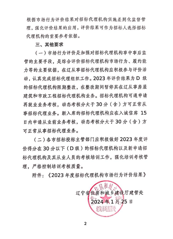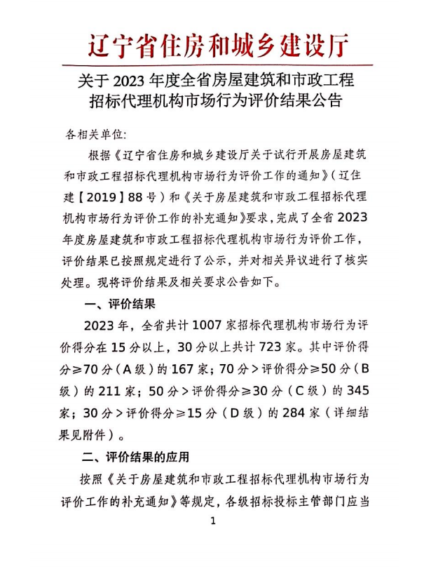 房屋建筑和市政工程招标代理机构市场行为评价是辽宁省住建厅为加强和完善辽宁地区招标代理机构市场行为监管,规范招标代理机构和从业人员执业行为,落实招标代理机构和从业人员主体责任,提高招标代理机构综合素质和业务水平而开展的年度系统工作,对提高招标代理机构综合素质和业务水平具有十分积极的作用。奇异果在线手机版(大中国区)始终高度重视业务的合规化管理与市场各方的评价反馈,通过不断完善内部管理制度、建设专业人才队伍、加强风险防控能力、规范采购业务行为、提升全过程价值服务水平等一系列举措,构建企业核心竞争力,引领行业规范发展。