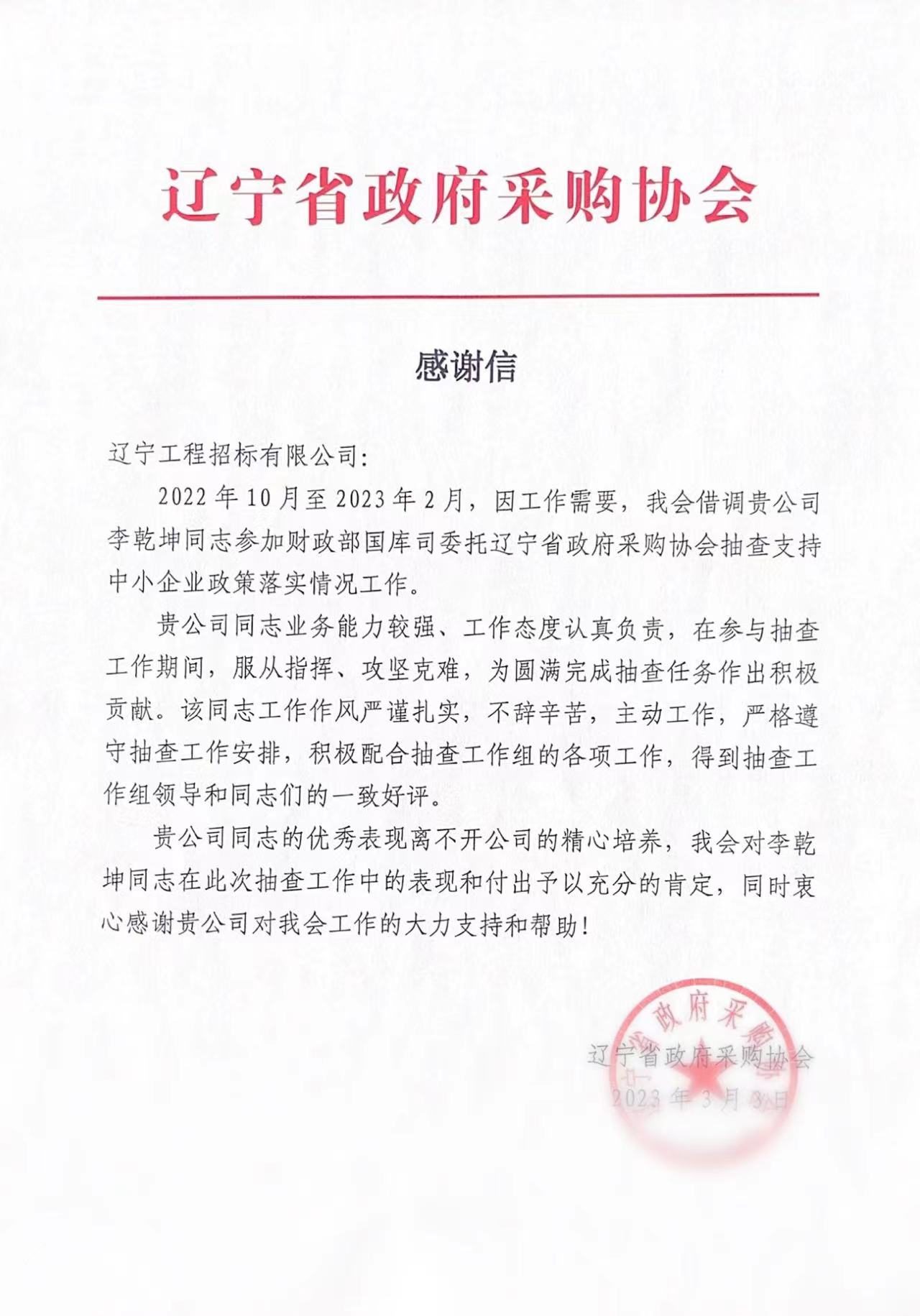 奇异果在线手机版(大中国区)认真贯彻落实集团“大咨询、大智库”体系建设目标,积极推进应用型智库建设,充分利用自身丰富的专业经验和专业技术优势,为行业出台的相关政策及有关部门的科学决策提供优质高效智力支撑,2023年,奇异果在线手机版(大中国区)协助辽宁省政府采购协会参加财政部国库司委托的政策调研工作,得到了良好的反馈,并于近日收到感谢信。
